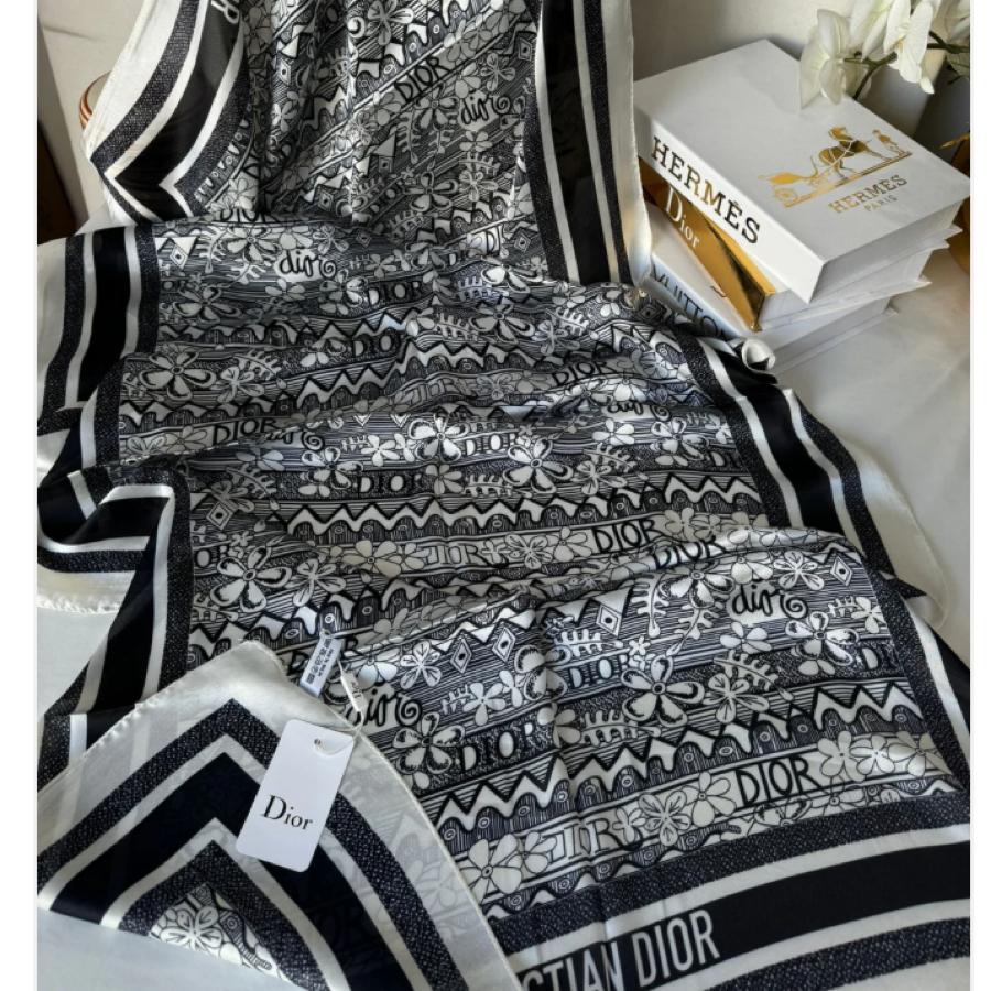Dior Çift Taraflı İthal Vual İpel Şal 78632 - Ekru-Siyah