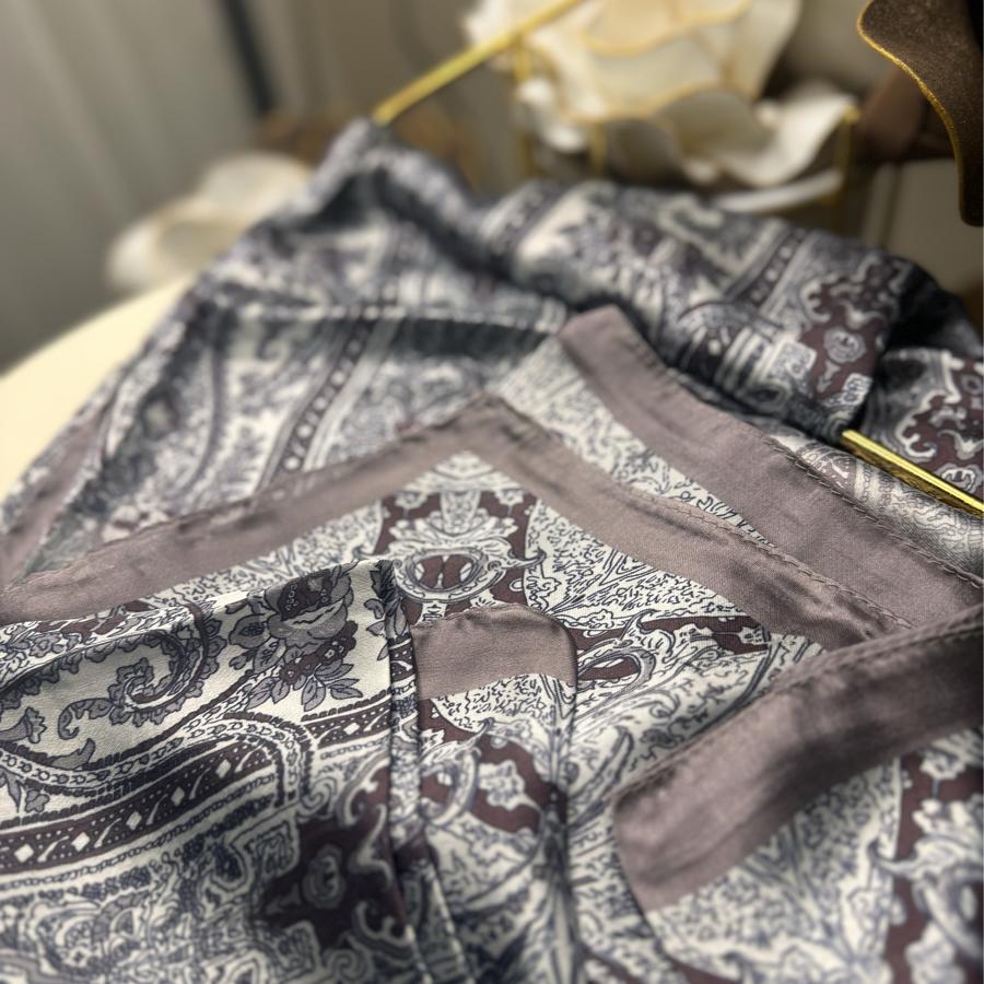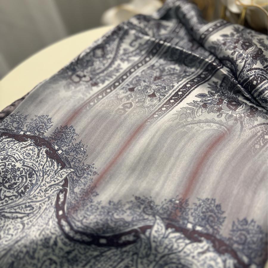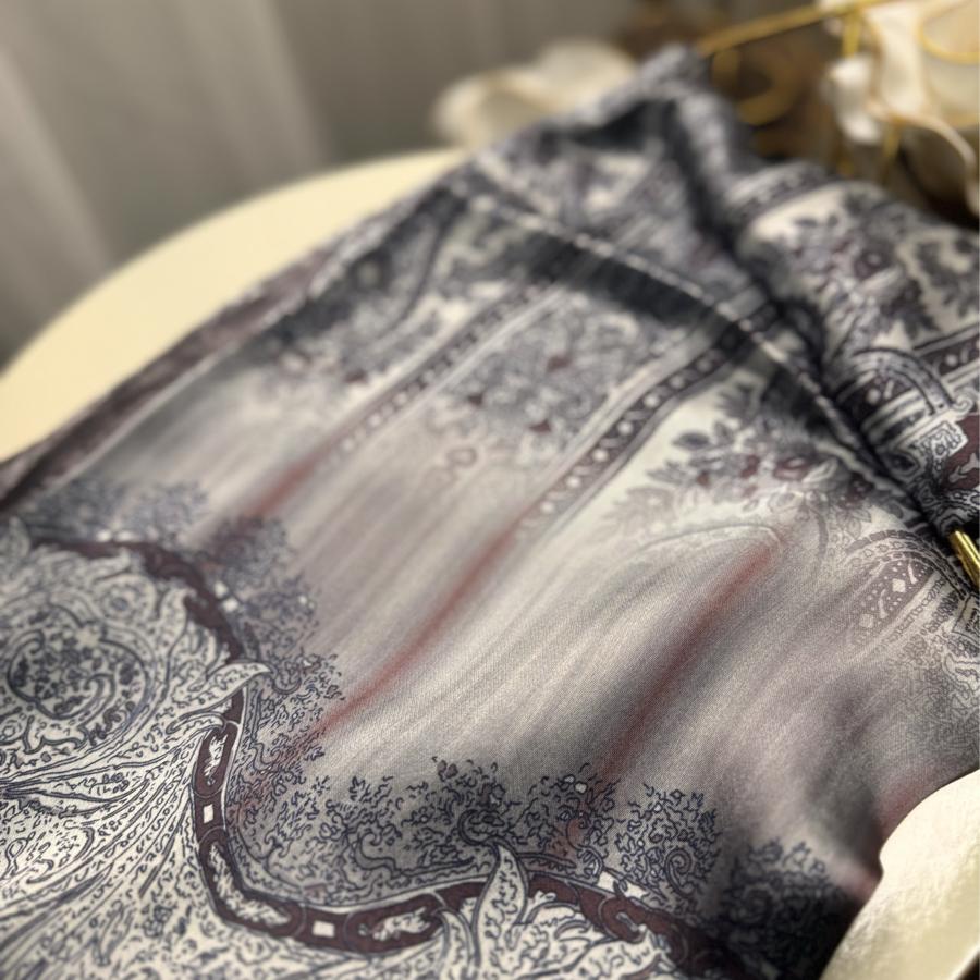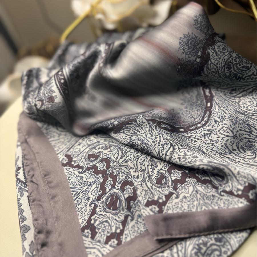 Etro Marka Yeni Sezon İthal Etnik Desen Vual İpek Şal - eflatun