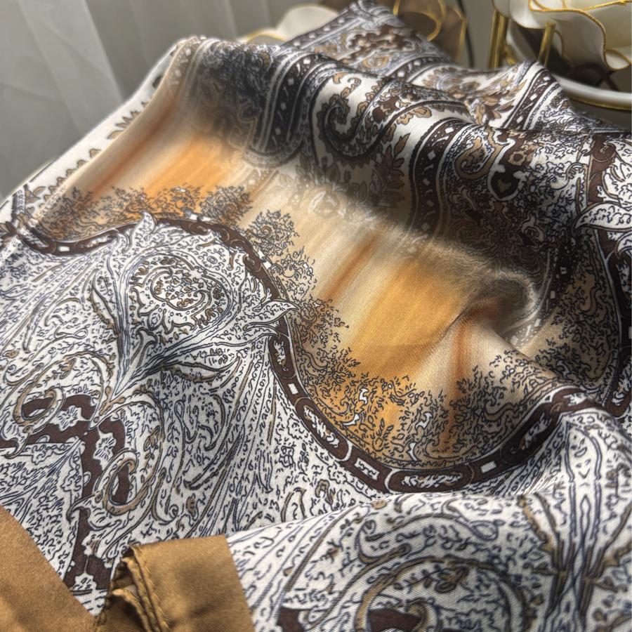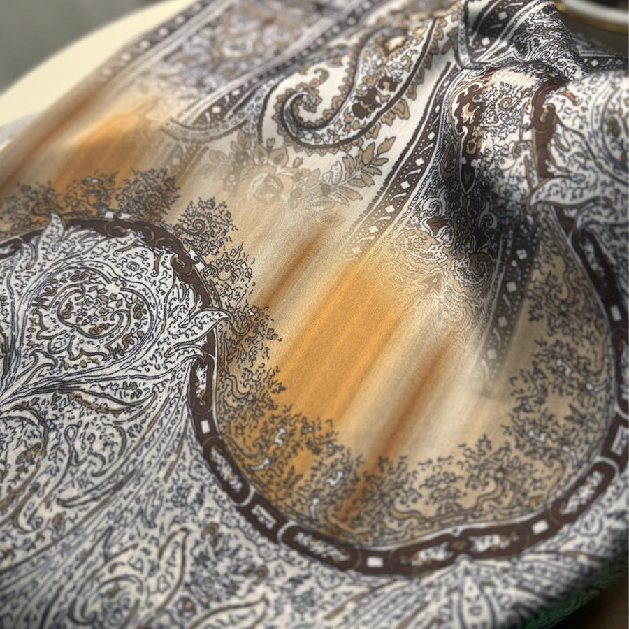 Etro Marka Yeni Sezon İthal Etnik Desen Vual İpek Şal - Hardal