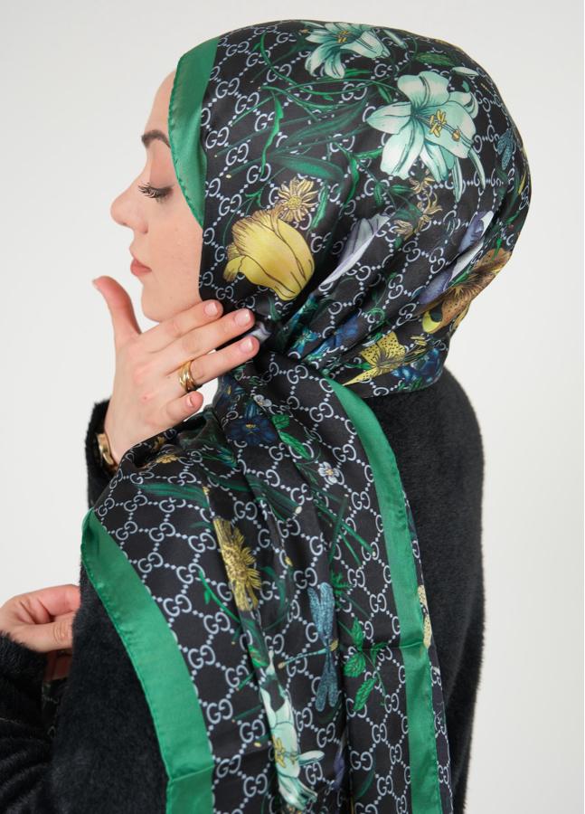 Gucci İthal Çifttaraflı vual ipek -yeşil/siyah