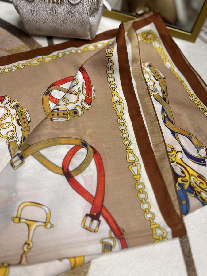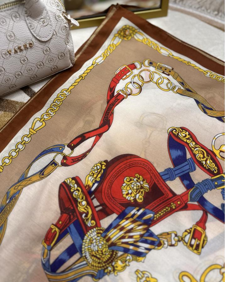 Hermes Zincir Desen Pamuk Soft Şal- Kahve