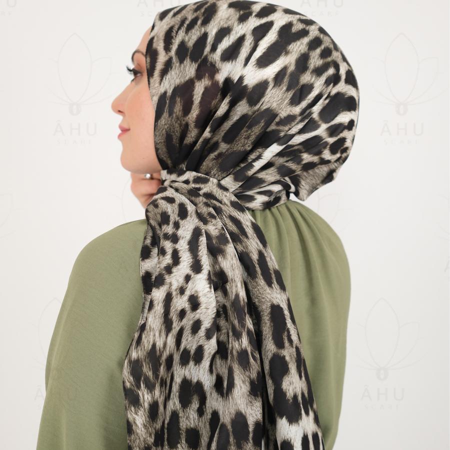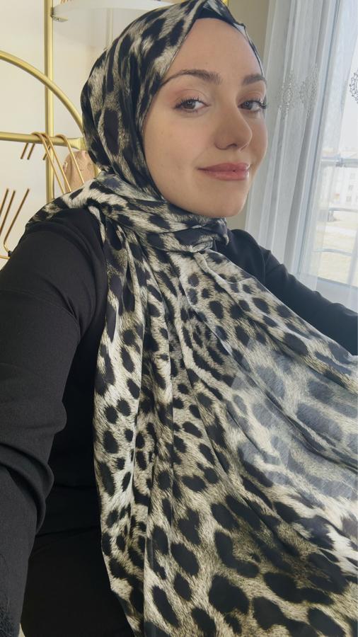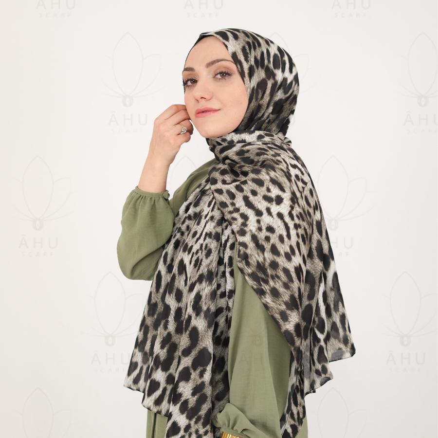 Leopar Desen Pamuk İpek Şal - Yeşil